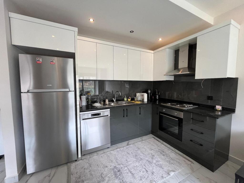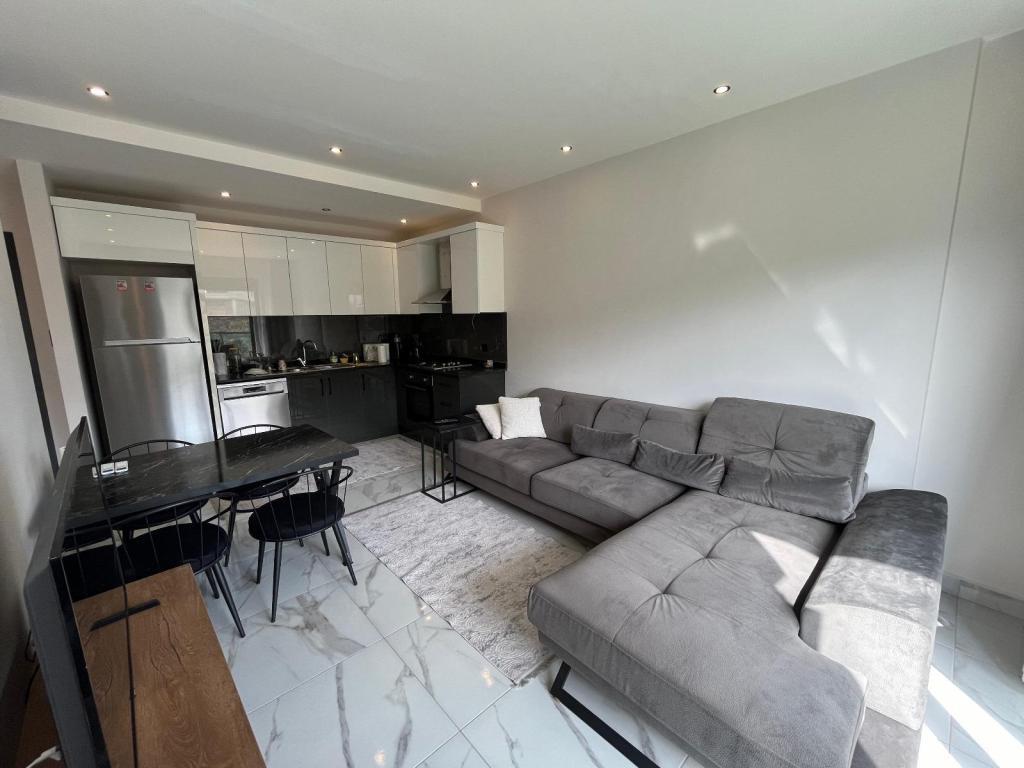 | Description: | In the prestigious Oba district of Alanya, a cozy furnished 1+1 apartment with an area of 50 m² is for sale, located on the 3rd floor of a four-story building. The apartment is fully equipped with high-quality furniture and household appliances, allowing you to move in immediately after purchase. The residential complex features well-developed infrastructure and a high level of security. The territory includes 24/7 security and surveillance cameras, a coded entrance, a generator and a water tank, an open parking area, a spacious green garden with a relaxation area and gazebo, a tennis court, outdoor and indoor swimming pools, a children's playground, a modern fitness room, and a sauna. The apartment is located in the highly sought-after Oba area, within walking distance of shops, cafes, restaurants, medical facilities, and public transportation. It is an excellent option both for permanent residence and for renting out with high profitability. Code: 5046 |