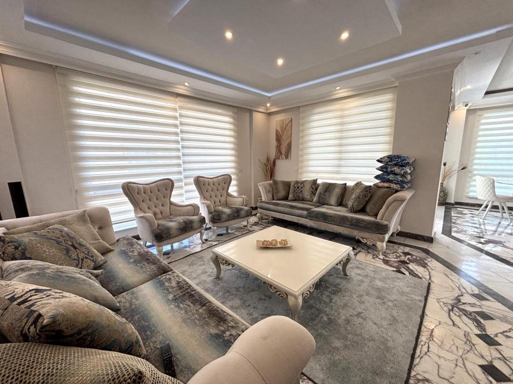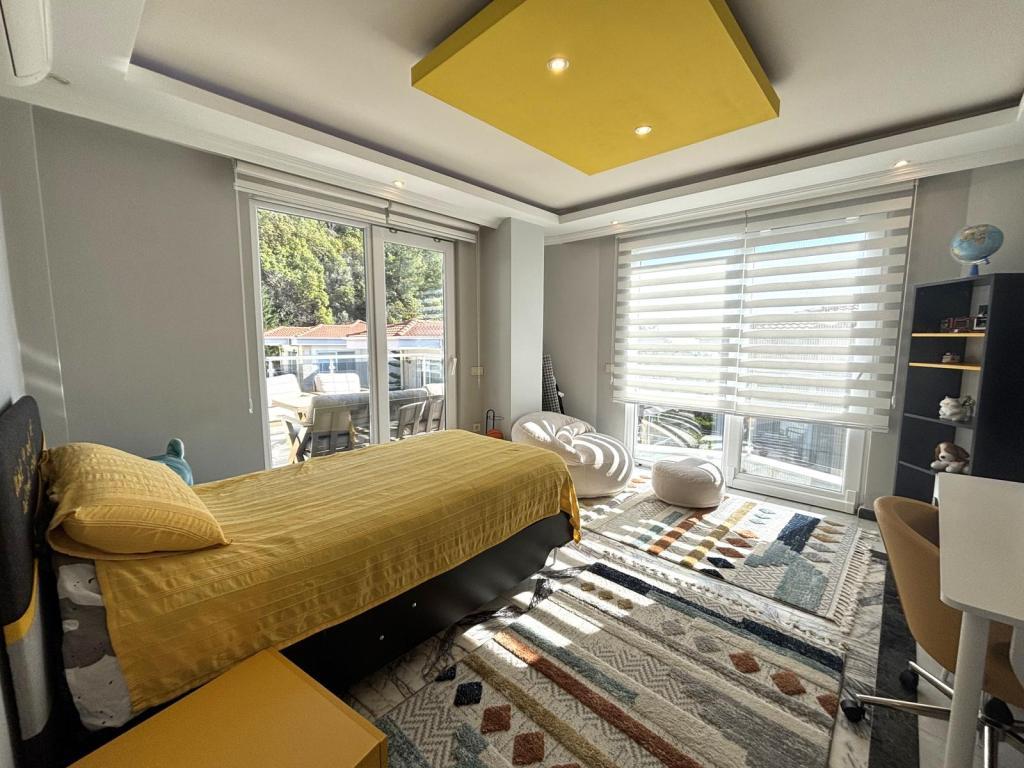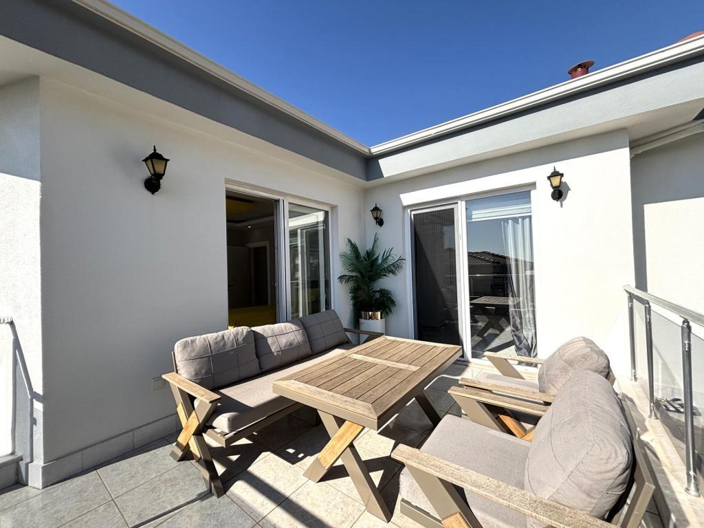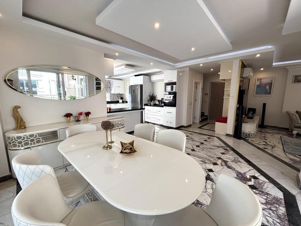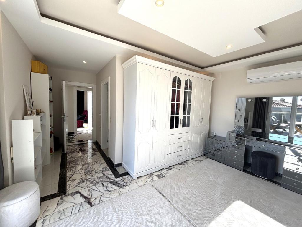 Alanya Bektaş’ta bulunan bu 3+1 dubleks villa, 144 m² kullanım alanıyla konforlu bir yaşam sunmaktadır. Full eşyalı olarak sunulan villa, taşınmaya hazır durumdadır ve deniz manzarasıyla ferah bir atmosfer sağlar. Villada 2 banyo, 3 WC ve 4 balkon ile geniş teras mevcuttur, böylece hem iç hem dış yaşam alanı açısından oldukça kullanışlıdır.