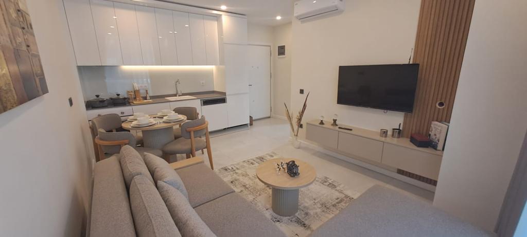 Apartment owners in the project will benefit from both the complex’s facilities and 5-star hotel amenities, as well as a transfer service to the beach. Buyers can choose and purchase the month or months that suit them. The apartments are delivered fully furnished, with white goods included and ready to use, so owners only need to bring their personal belongings. Consisting exclusively of 1+1 units, these timeshare apartments offer enjoyable views of the pool and forest. Designed with a modern architectural approach and first-class materials, the apartments prioritize comfort and satisfaction.