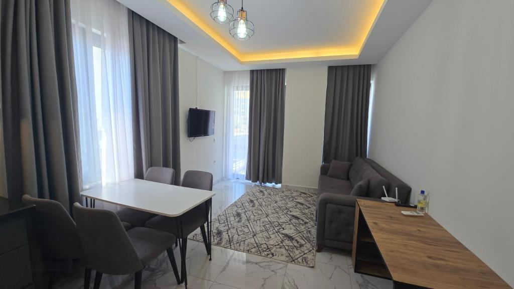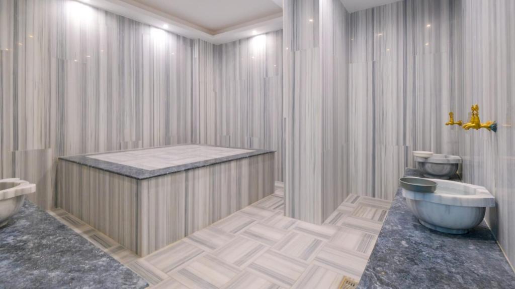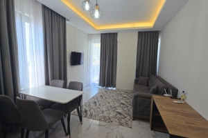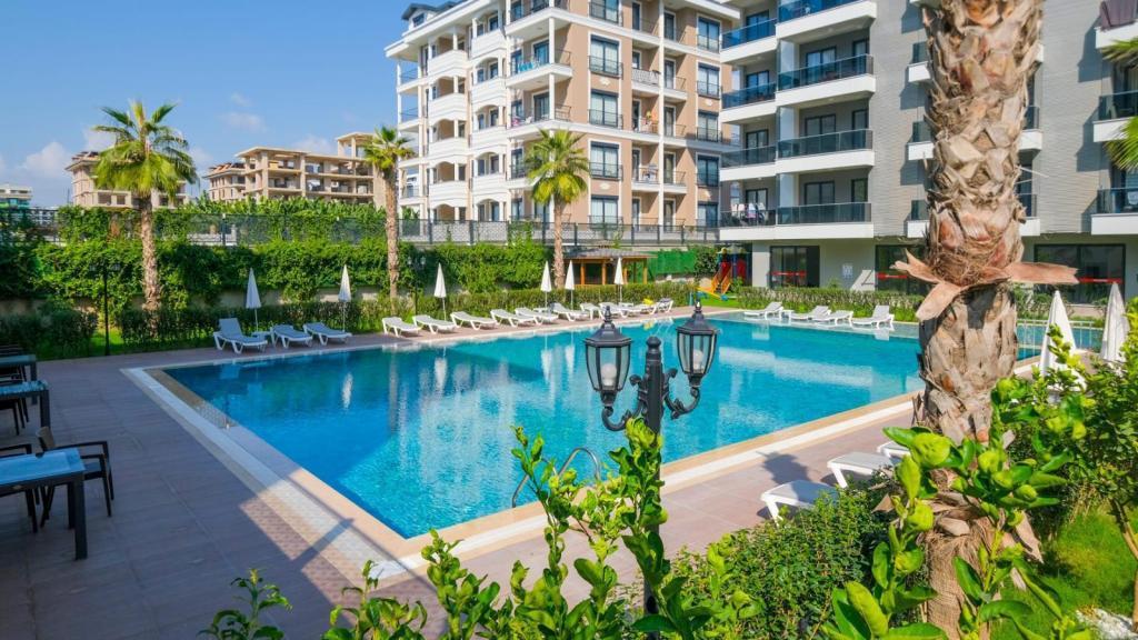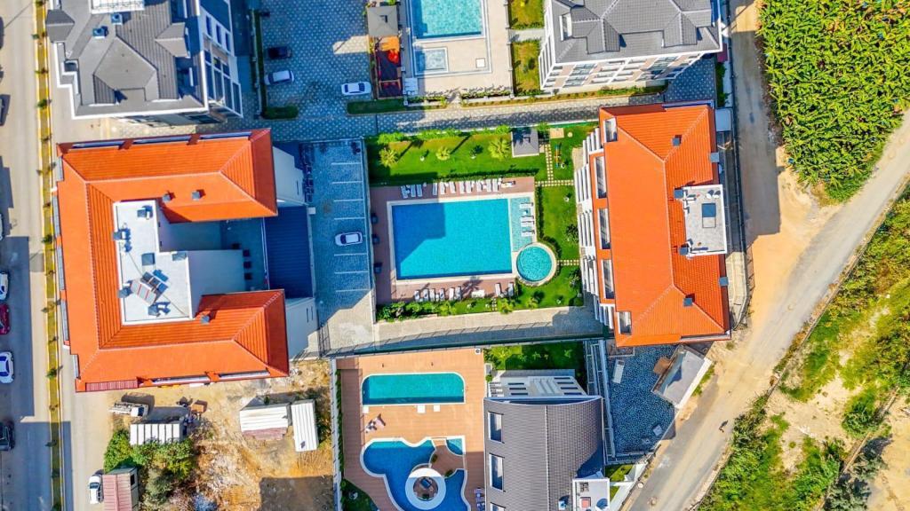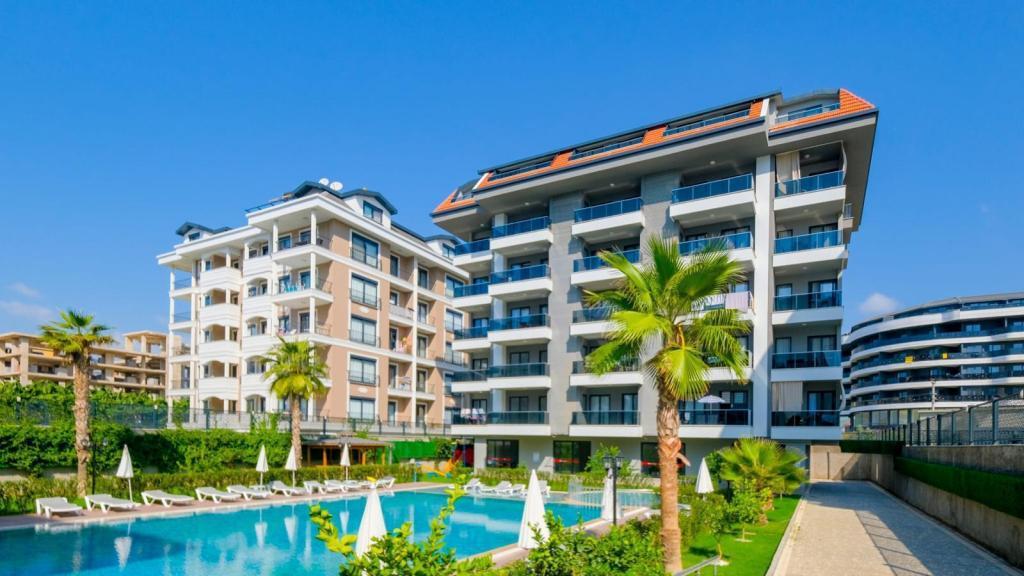 The residential complex offers everything you need for comfortable living and relaxation: outdoor swimming pool, Turkish bath (hamam), sauna, gym, and parking.